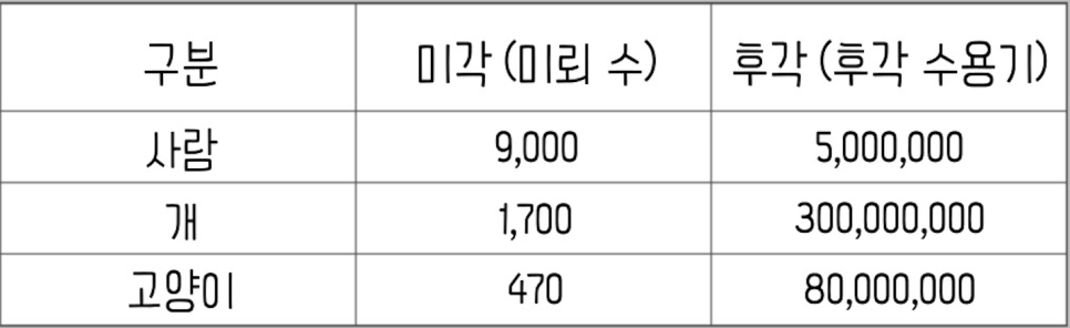 그렇다면 느낄 수 있는 미각의 종류(짠만, 단맛 등)은 사람보다 적을까요? 많을까요?